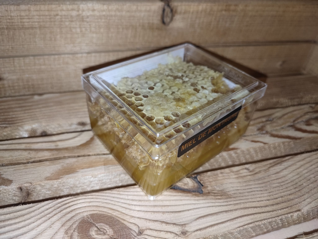 Miel de montagne prélevé à même la ruche, avec toutes ses qualités nutritionnelles. Il est particulièrement apprécié des puristes.